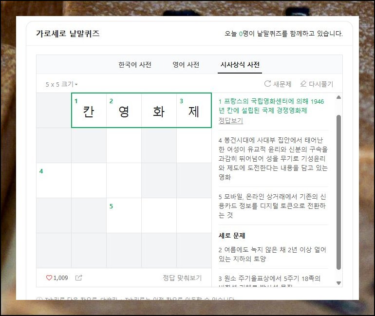 돈 들이지 않고 즐기는 온라인 낱말맞추기 플랫폼이 있습니다. 웹 브라우저만 열면 어디서든 바로 시작할 수 있어요. 네이버 검색창에 가로 세로 낱말퀴즈를 입력해 보세요. 화면을 살짝 아래로 움직이면 가로와 세로 칸이 빼곡히 채워진 퍼즐 판이 등장합니다. 다 풀고 나서도 새문제 버튼 하나로 다음 판을 곧바로 시작할 수 있어요.