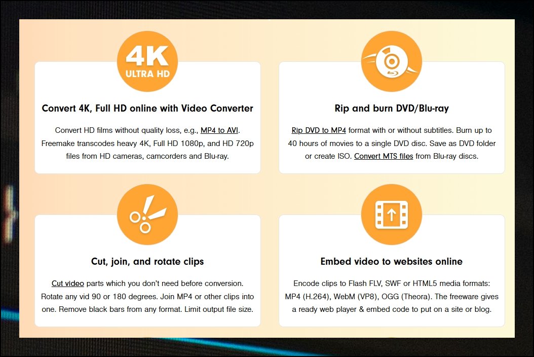 Freemake는 사적인 용도에 최적화된 동영상 파일 프로그램입니다. 수익 창출 목적보다는 개인 이용이 바람직해요. 모바일 기기나 패드에서 혼자 콘텐츠를 감상하려 할 때 안성맞춤입니다. 상업적 배포 용도가 아닌 이상 쓰기에 충분해요. 가볍게 내려받아 바로 활용해보세요. 개인 소장 클립을 다양한 기기에서 마음껏 즐길 수 있습니다.