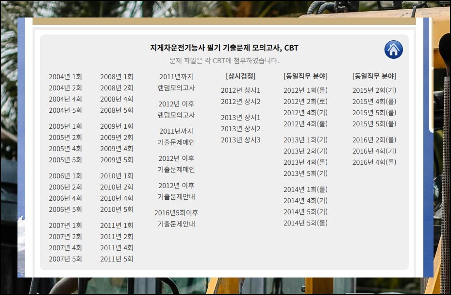 2004년에서 2011년 사이 시행된 필기 문항들이 정리되어 올라와 있습니다. 연도가 지났다고 걱정할 이유는 없어요. 지게차운전기능사 분야에서는 핵심 주제와 구성 방식이 거의 바뀌지 않거든요. 여러 해 치 문항을 두루 접하다 보면 빈출 영역이 자연스럽게 파악됩니다.