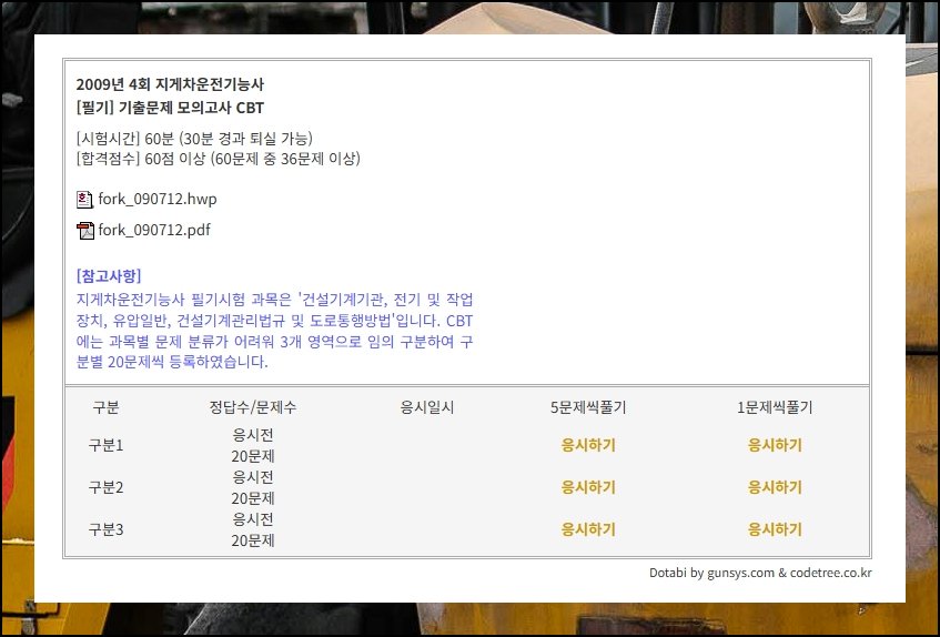 국가 기술 자격을 준비한다면 웹 기반 학습 도구를 활용하는 게 좋아요. 건시스템이라는 사이트에서 각종 필기 시험 자료를 쉽게 확인할 수 있습니다. 단순 저장뿐 아니라 화면에서 직접 모의 테스트를 치를 수도 있어요. 지게차 관련 실전 감각을 미리 잡고 싶다면 꼭 방문해 보세요.