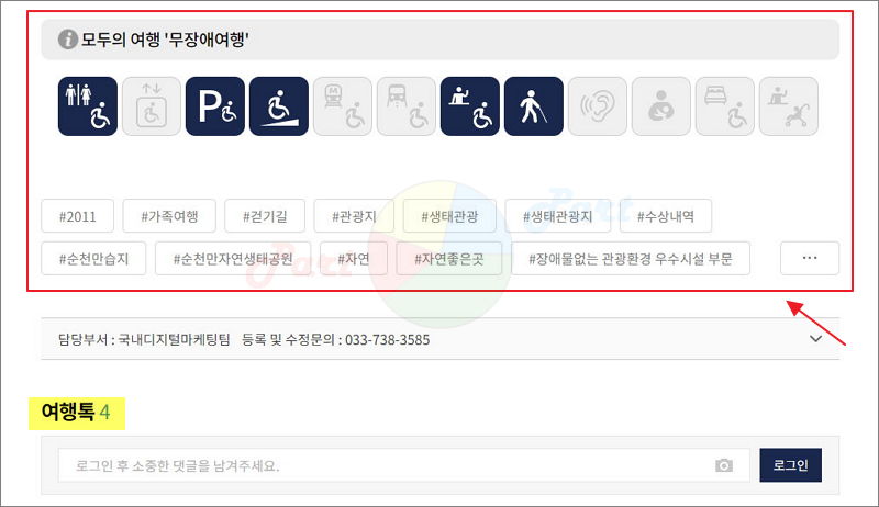 편의 시설이나 태그를 통해서도 해당 지역에 대해 알아볼 수 있는데요. 여행톡의 경우 해당 관광 장소를 여행한 사람들의 후기가 댓글로 적혀 있기 때문에 여행지 선정에 도움을 받을 수 있어요.