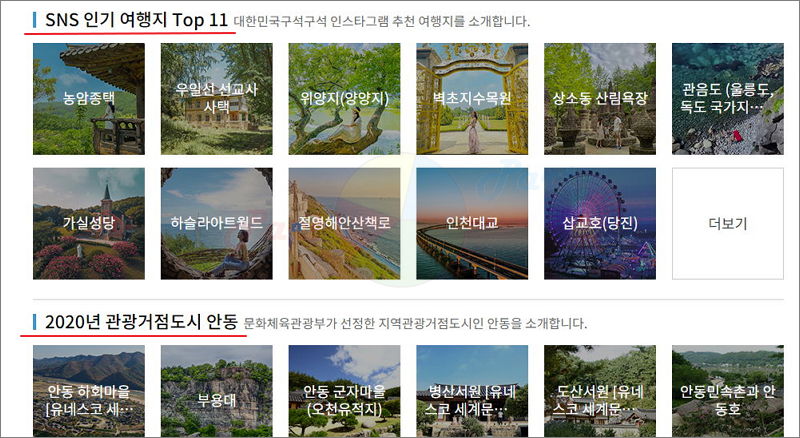sns 인기 여행지나 2020년 관광 거점 도시인 안동의 여행지도 알아볼 수 있는 서비스가 있는데요. 전국관광지도와 함께 이용하면 정말 좋아요.