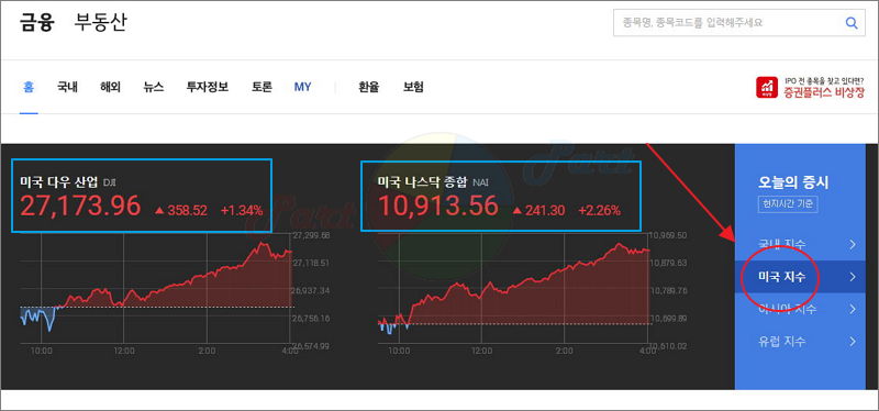 급하게 해당 미국 지수를 확인해야 할 때가 있어요. 그럴 때에는 다음 금융 사이트를 이용해 보세요. 국내 및 세계 증시에 대한 정보를 쉽고 편리하게 얻을 수 있어요. 환율도 확인이 가능하고요.