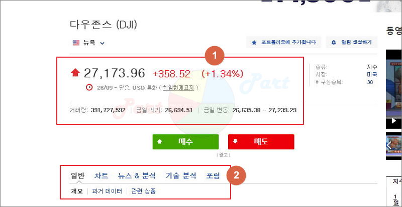 현재 나스닥 다우지수 주가 정보 제대로 얻기.