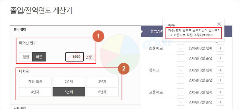 이곳에서는 졸업년도를 쉽게 계산할 수 있는 프로그램을 무료로 제공하고 있어요.