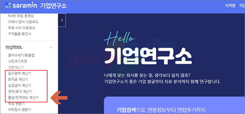 좌측에 보면 이력서 양식, 무료 서식을 다운로드 받거나 연봉, 실수령액, 퇴직금 등을 쉽게 계산할 수 있는 계산기 프로그램이 많이 있어요.