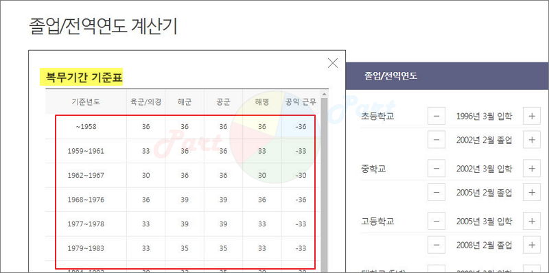 전용 계산기로 편하게 확인하는 졸업년도 및 군 복무기간 안내.