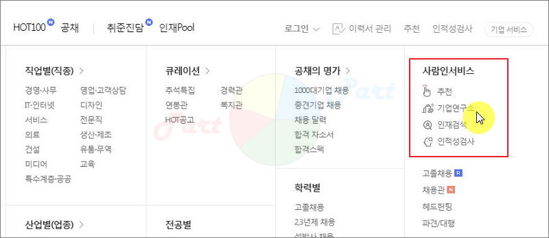 전체 메뉴에서 [사람인 서비스] 카테고리를 살펴봐 주세요.
