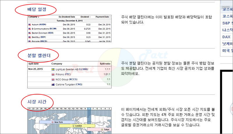 배당 일정, 주식 분할 및 병합 캘린더, 시장 시간도 있으니 함께 이용해 보세요.