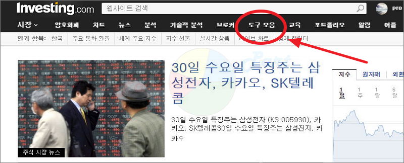 거래 및 투자 도구 페이지에 접속하면 유용한 도구가 많이 나와요.