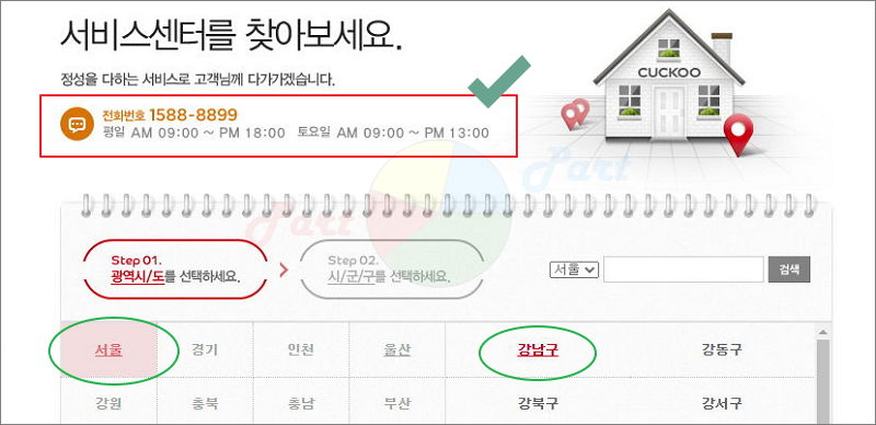 참고로 쿠쿠의 수리 센터는 평일에는 오전 9시부터 오후 6시까지 운영이 되고 있고요.
