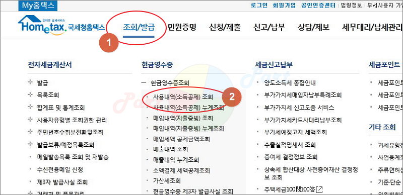 해당 사이트를 통해 현금영수증이나 세금에 관련된 대부분의 서비스를 처리할 수 있어요.