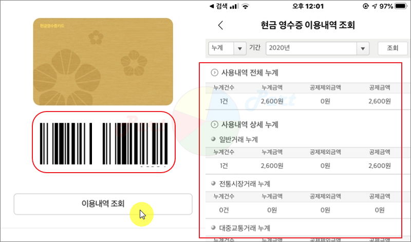 이용내역도 국세청 홈페이지 방문을 하지 않고, 앱을 통해 조회할 수 있고요.
