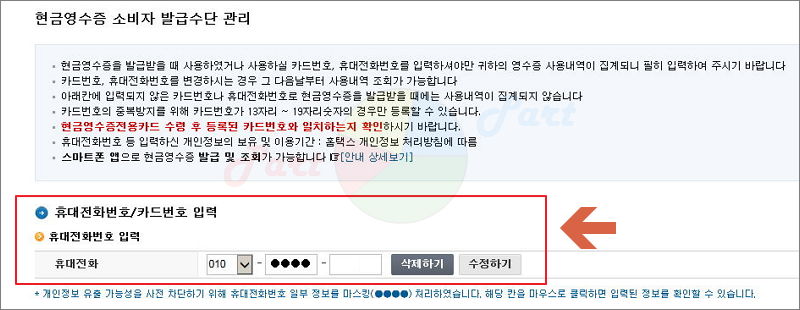 ◈ 현금영수증 발급을 위해 번호를 알려주는 것인데요.