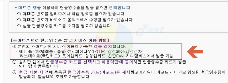 8. 스마트폰으로 현금영수증 발급 서비스 이용하기