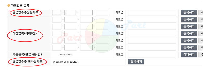 현금영수증 전용 카드는 물론이고, 자주 가지고 다니는 신용카드를 등록할 수 있어요.