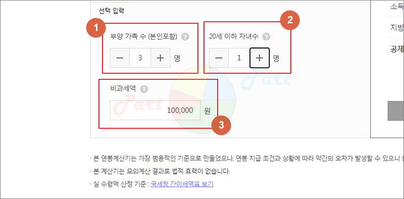 세금이나 실수령액에 대한 좀 더 정확한 결과를 얻기 위해서는 선택 입력 항목도 채워 넣는 것이 좋아요.
