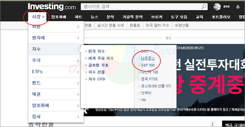인베스팅 사이트에 접속하면 많은 메뉴가 나타날 거에요.