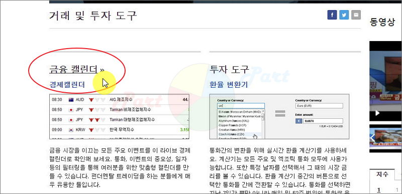 금융 캘린더 페이지가 열리면 여러 가지 주식시장 관련 서비스가 나오는데요.