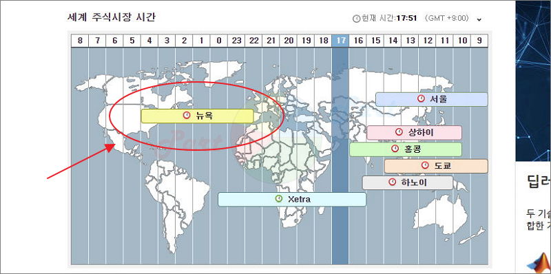 지도로 된 그래프를 통해 여러 지역에 있는 거래소의 개장 및 폐장 여부를 알 수 있는데요.