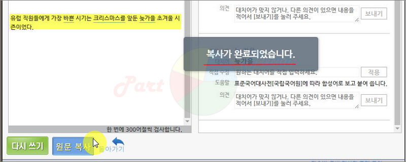 문법적인 오류를 제대로 교정한 문장을 다시 사용하고 싶은 경우에는 "원문 복사" 버튼을 클릭해 주세요.