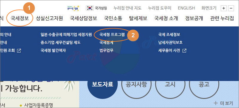 ▲ 메뉴에서 "국세청 프로그램" 클릭