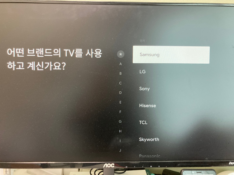 ▼ 전원 버튼 설정을 위해 TV 브랜드를 선택합니다. 모니터를 사용하는 경우에는 모니터 브랜드를 선택하면 됩니다.