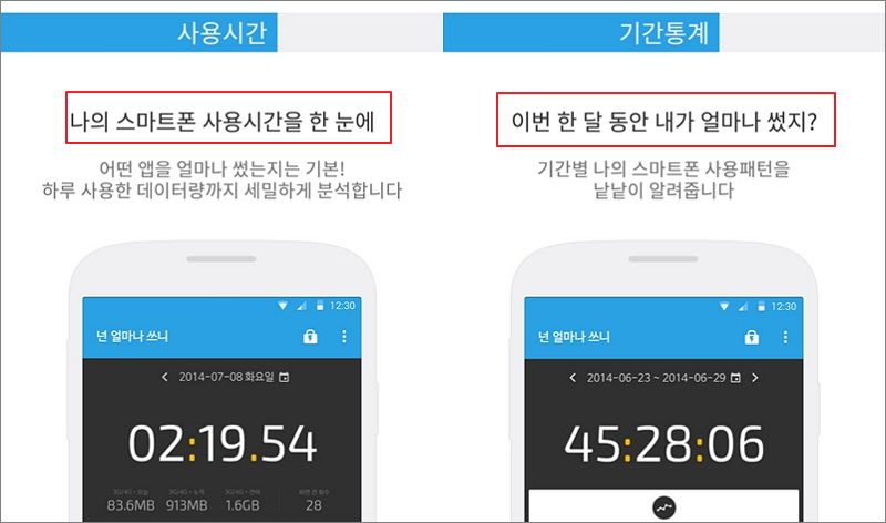 ▼ 해당 앱을 이용하면 내가 스마트폰을 얼마나 사용했는지 알 수 있습니다. 객관적 수치를 확인하여 자신의 중독 정보가 얼마나 심각한지 확인할 수 있습니다.