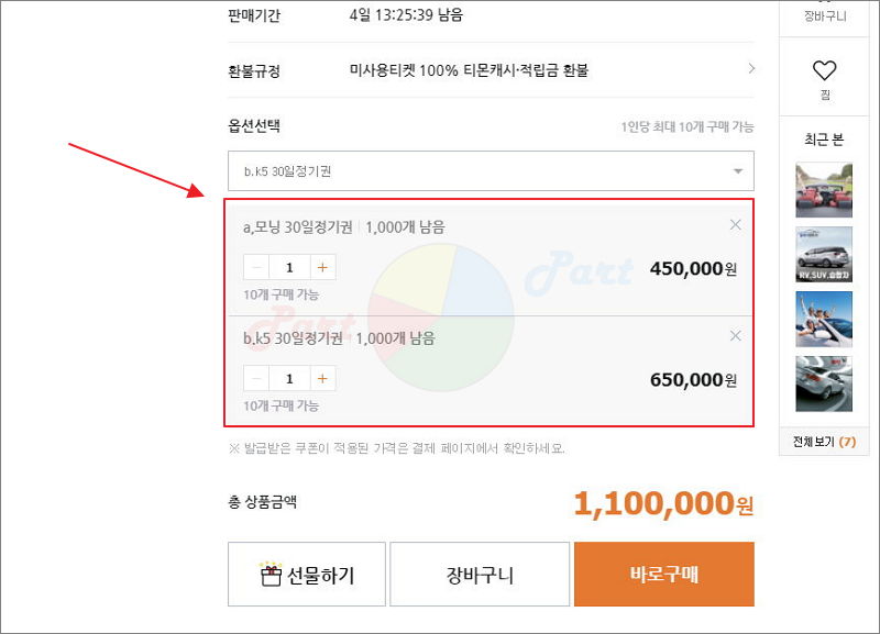 ▼ 어떤 상품이던 정확한 시세를 알아보기 위해서는 여러 판매처에서 제시하는 가격을 확인하는 것이 좋습니다. 대체적으로 오프라인보다 저렴한 온라인 쇼핑몰을 통해 판매되는 자동차 렌트 비용을 알아보겠습니다. 제 경험상 티몬 사이트가 괜찮았습니다. 판매자가 많고, 렌트카 이용 비용도 저렴해 보였습니다.
