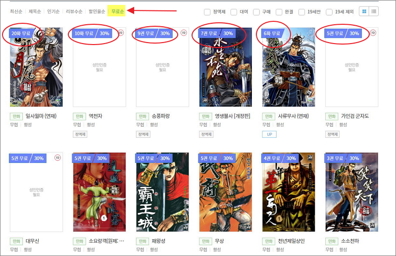 ▼ 현재 연재 중인 일사월마의 경우 20화를 공짜로 볼 수 있습니다. 그 외에 역천자, 승풍파랑, 영생불사, 사류무사, 가인검 군자도, 대무신, 소요랑객, 패왕성, 무상, 천년제일상인, 소소천하 등의 일부를 무료로 감상할 수 있습니다.