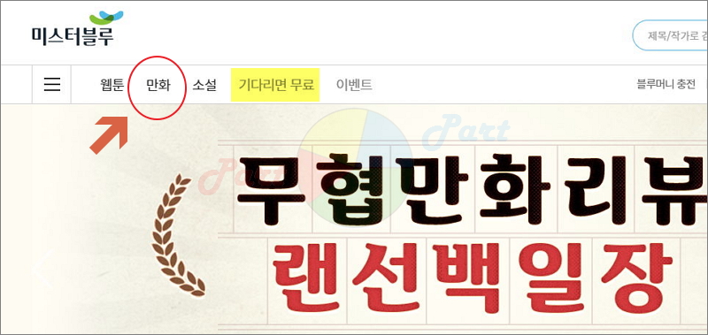 ▼ 미스터블루 사이트에서는 만화 외에도 웹툰, 소설 컨텐츠를 제공하고 있습니다. 유료로 이용하는 곳이지만, 일부 작품에 대해서는 무료로 제공하고 있습니다. 여기서 진행하는 이벤트를 제대로 활용하면 황성 작가의 많은 작품을 무료로 감상할 수 있습니다.