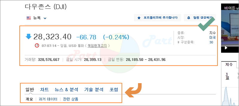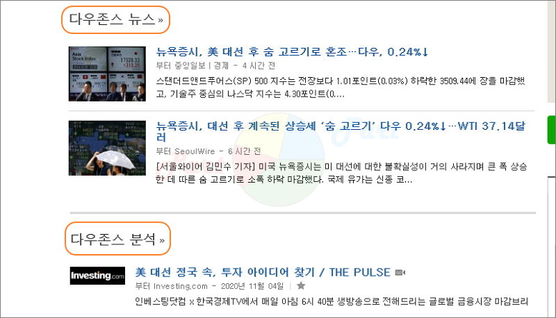국내증시에 있는 코스피와 코스닥처럼 뉴욕증시에도 이러한 지수가 있습니다. 다우존스, 나스닥, S&P 등이 있죠. 이 중에서 대표적으로 많이 알아보는 다우지수 뉴욕증시에 대한 여러 가지 정보를 쉽게 얻는 방법을 알려드리겠습니다. 실시간으로 얻을 수 있는 시세 데이터와 차트는 물론이고, 관련 뉴스나 분석 자료를 손쉽게 얻을 수 있습니다.