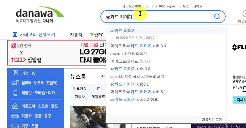 ▼ 다나와 사이트에 접속했습니다. 검색창에 "sd카드 리더기"를 입력하고, 엔터키를 눌러줍니다.