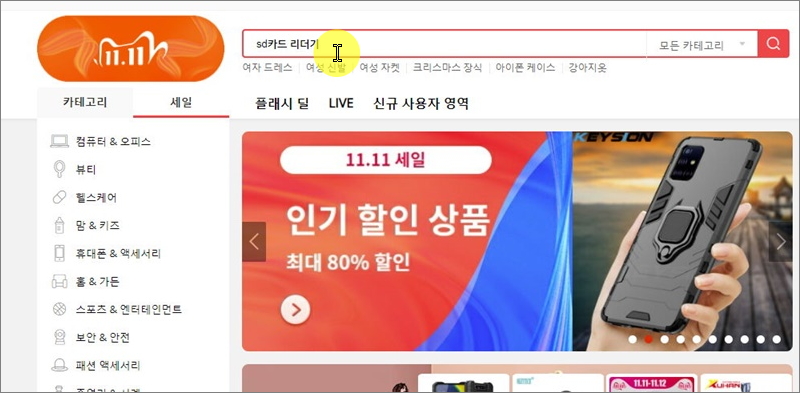 ▼ 요즘에는 알리익스프레스에서 한글로 검색이 가능합니다. sd카드 리더기 제품을 검색해 보았습니다.
