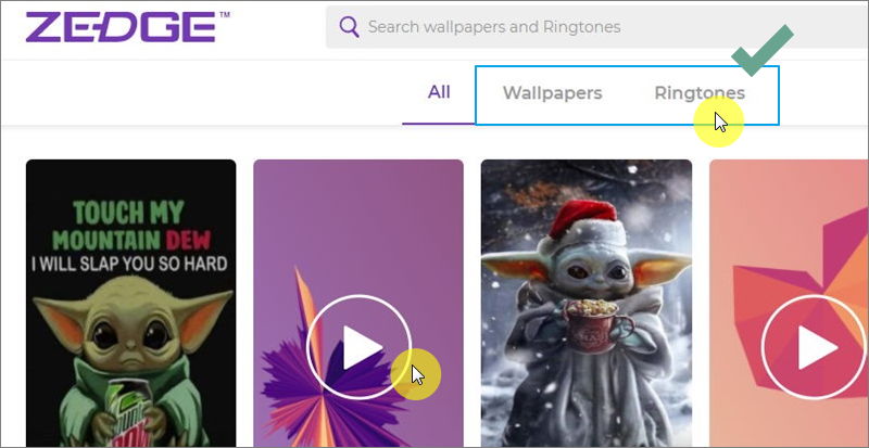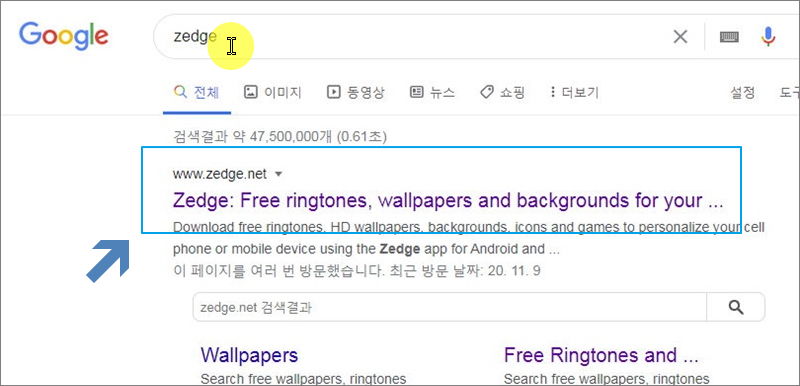 ▼ Zedge 사이트에 접속했습니다. 이곳에서는 벨소리와 함께 전화기용 배경화면도 무료로 제공하고 있습니다.