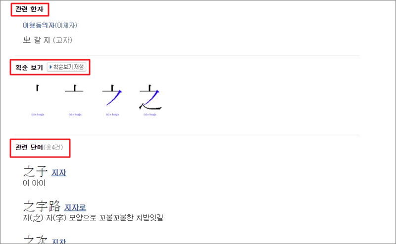 ▼ 네이버 무료 한문사전을 통해 관련 한자나 단어, 고사설어를 알아볼 수 있고, 한문을 쓸 때 어떤 순서로 쓰면 되는지 알아볼 수도 있습니다.