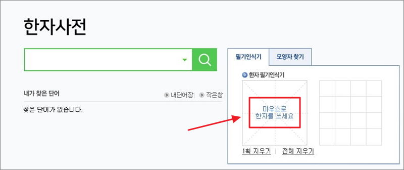 ▼ 이곳에서는 무료 한문 번역기 서비스를 제공하고 있습니다. 네이버 한자사전 사이트에서 제가 유용하게 사용하는 기능이 있습니다. 바로 "한자 필기인식기"입니다. 마우스로 찾고자 하는 한자의 모양을 그리기만 하면 됩니다. 한문 공부할 때 배우던 옥편 사용법을 익힐 필요가 없습니다.