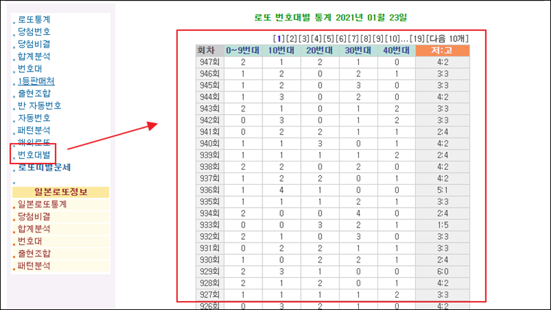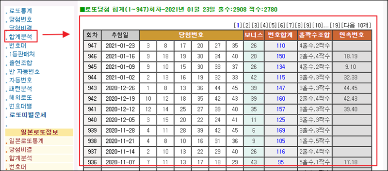 로또당첨번호 조회 전체보기 및 분석하기