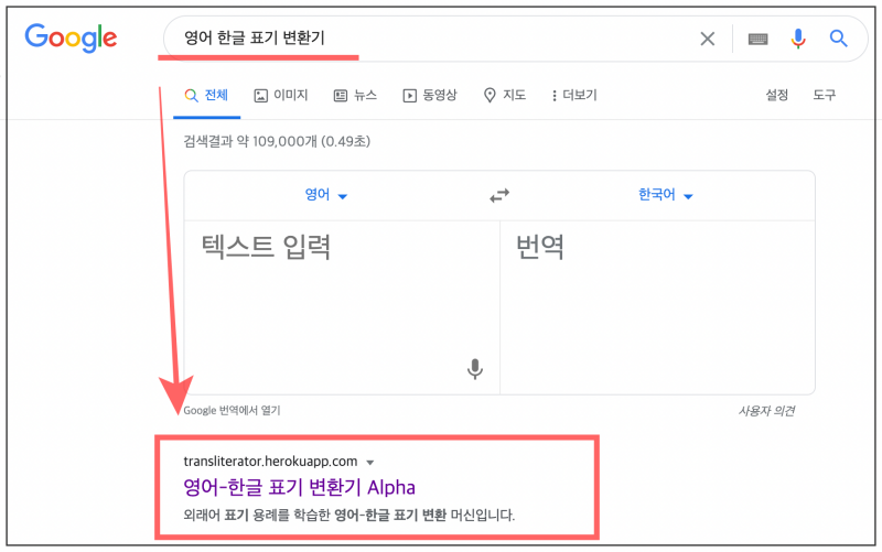 이렇게 검색을 통해 한글변환을 진행한 결과에 대한 사용 예시를 확인할 수 있어요.