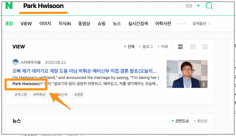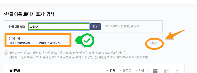 뉴스의 경우에는 유명인을 거론하는 일이 많죠. 그렇기 때문에 저는 뉴스 검색결과를 통해 해당 로마자 표기에 대한 사용 여부를 판단하는 편이에요. 이런 식으로 한글이름과 영어이름 사이에서 서로 변환이 가능해요. 그럼 직접 해보세요.