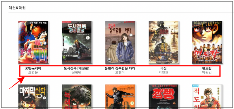 장르별 무료 만화책도 볼 수 있는데요. 꽤 권수가 많은 작품에 대해서도 처음부터 볼 수 있는곳이에요.