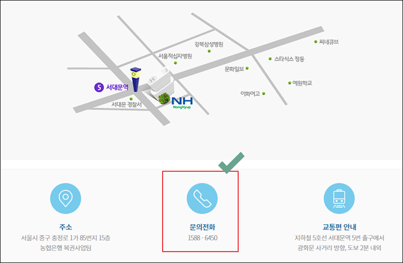 농협은행 본점의 위치는 다음과 같아요. 서울시 중구 충정로 1가 85번지 15층 농협은행 복권사업팀으로 방문하면 되는데요. 방문하기 전에 다음 연락처로 연락을 해보고 가는 것이 좋아요. 먼 길을 왔는데, 영업시간이 끝나서 방문하지 못하는 일이 발생할 수도 있기 때문이에요.