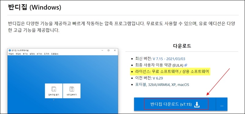 국내에서 많이 사용하는 프로그램은 2가지가 있어요. 반디집과 알집인데요. 반디집의 경우 무료로 사용할 수 있고, 프로그램이 가벼워서 좋아요.