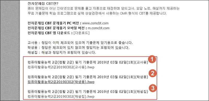 컴퓨터 활용능력 2급 자격증에 대한 기출문제 자료는 크게 3가지로 구성되어 있어요. 교사용, 학생용, 해설집 이렇게 3가지인데요. 직접 파일을 다운 받아 열어보고, 어떤 차이가 있는지 알려드리도록 할게요.