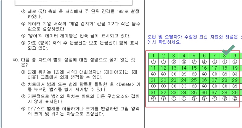 이번에는 학생용 기출문제 자료를 다운 받았어요. 문제에 답이 표시되어 있기 않기 때문에 모의고사 및 테스트 용도로 사용하기에 적합한데요. 정답표의 경우 마지막 페이지에서 맨 끝에 있으니 참고해 주세요.