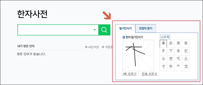 네이버 한자사전를 통해 여러 가지 한자 검색이 가능한데요. 모양을 알고 있는 한자라면 이렇게 필기인식기를 이용하여 그려보세요. 그럼 해당 한자가 대법원에서 인정한 인명용 한자인지 바로 알 수 있어요.