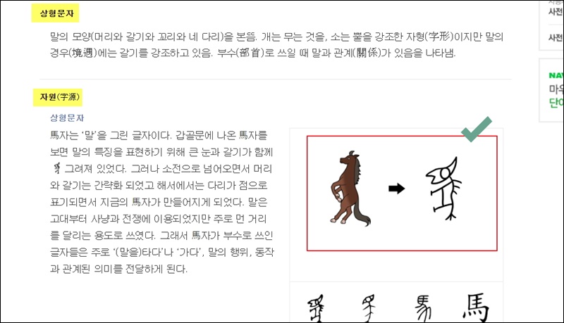 결과를 보면 좀 더 많은 내용을 살펴볼 수 있어요. 작명을 하거나 개명을 할 때 또는 한문공부를 할 때 도움이 되는 내용이 많아요. 상형문자와 자원의 경우 해당 문자가 어떻게 만들어졌는지 이해하는 데에 도움이 돼죠.