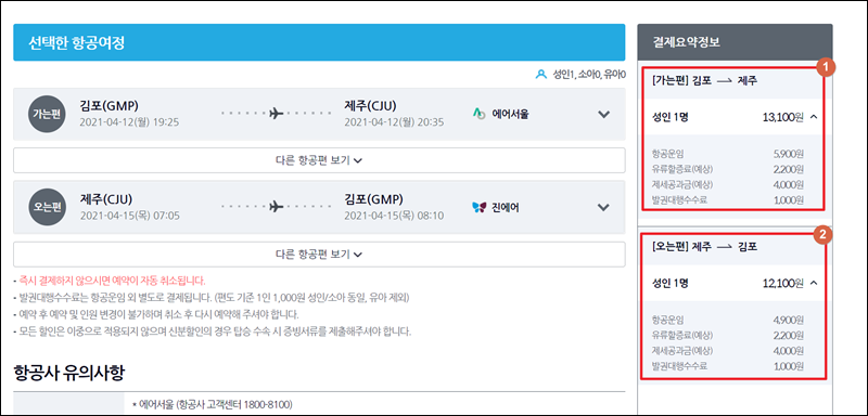 마지막으로 항공사 유의사항을 살펴본 후 비행기표 결제를 진행하면 돼요. 저가항공권 특성상 추가 서비스나 추가 혜택이 적을 수 있어요. 유의사항을 통해 이러한 부분을 꼼꼼히 확인해 보세요.