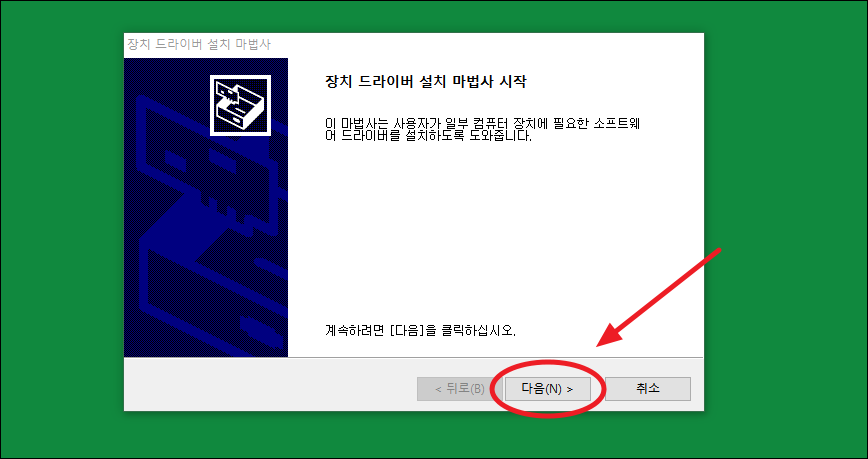 더블 클릭 이후에 바로 윈도우의 "장치 드라이버 설치 마법사"가 시작되는데요. 여기에서 다음 버튼을 눌러 무선 랜카드 전용 드라이버를 설치하면 돼요.