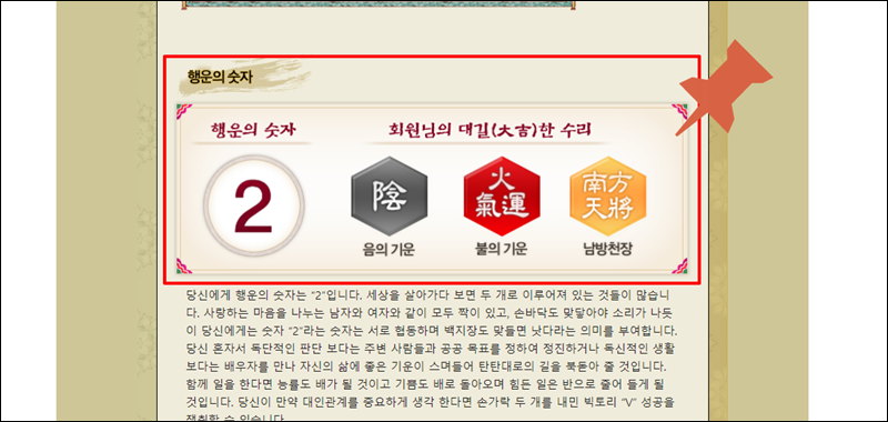 행운의 숫자도 알아볼 수 있는데요. 빨간색은 가정과 사랑, 성공, 명예 부분에 있어서 좋은 행운을 가져다 준다고 해요. 반대로 불운의 색도 있으니 참고해 주세요.